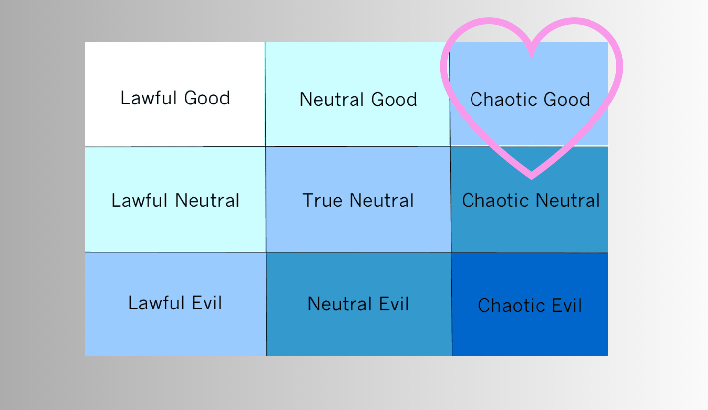 Beautiful melody. On the following chart, I’m feeling a “Chaotic Good.”